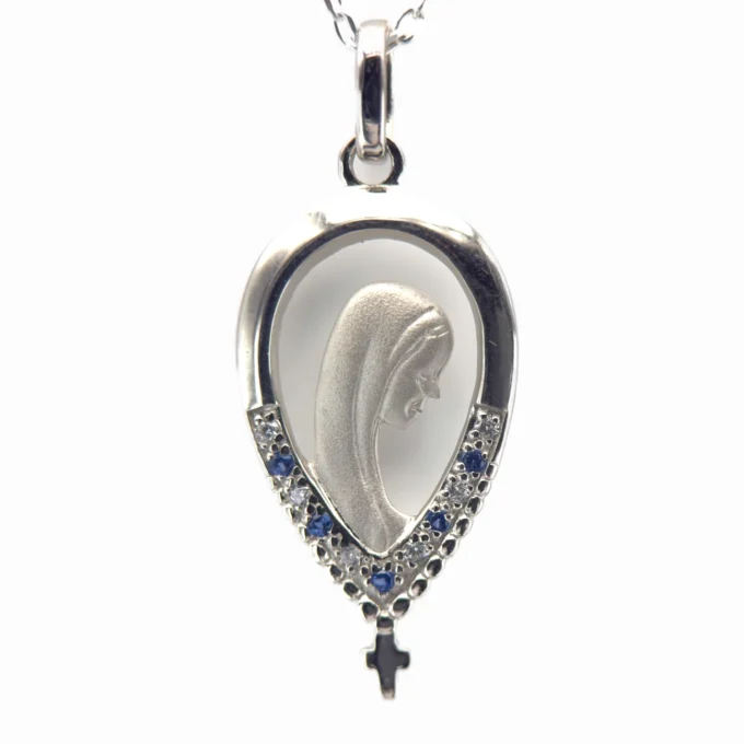 Pendentif Vierge Marie sertie de pierres – Argent – 22 mm – 3 coloris