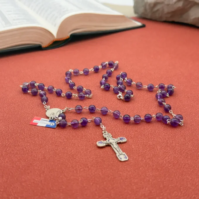 Chapelet Collier Perle Pierre de lave – Notre-Dame de Lourdes
