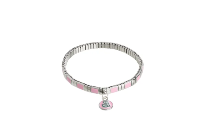 Élégance et sobriété définissent ce bracelet élastique en acier inoxydable. Ses maillons argentés sont ponctués parements roses, offrant un contraste raffiné et lumineux. En son centre, une médaille ronde émaillée rose représentant Notre-Dame de Lourdes apporte une touche de foi et de symbolisme. Son système extensible assure un port confortable et un ajustement parfait à tous les poignets.