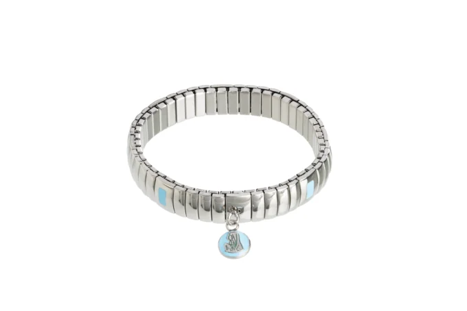 Élégance et sobriété définissent ce bracelet élastique en acier inoxydable. Ses maillons argentés sont ponctués de petits détails bleus, offrant un contraste raffiné et lumineux. En son centre, une médaille ronde émaillée bleue représentant Notre-Dame de Lourdes apporte une touche de foi et de symbolisme. Son système extensible assure un port confortable et un ajustement parfait à tous les poignets.