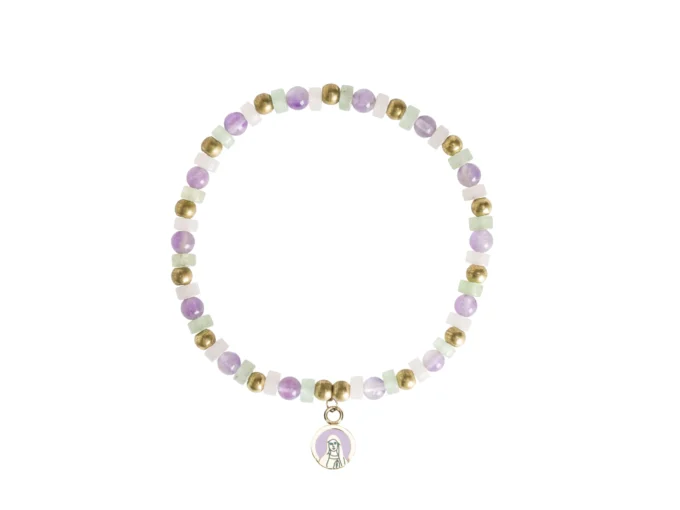 Bracelet fin perles lilas & doré – médaillon Vierge – Leo & Geo
