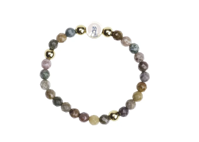 Chic et symbolique, ce bracelet Leo & Geo alterne de petites perles rondes facettées aux nuances minérales et des billes dorées lumineuses. Au centre, un médaillon rond Vierge Marie émaillé rose apporte une touche délicatement spirituelle. Monté sur élastique, il s’enfile en un geste et convient à la plupart des poignets.