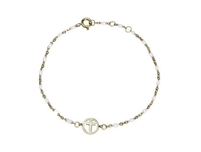 Bracelet rosario doré & médaillon croix (blanc) – Leo & Geo