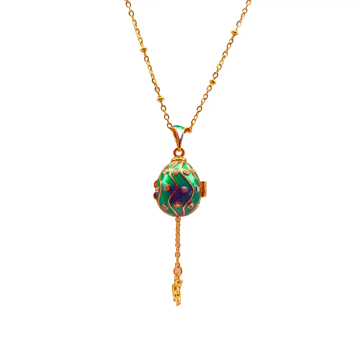 Ce collier unique s’inspire des célèbres œufs impériaux, véritables trésors d’art et de mystère.