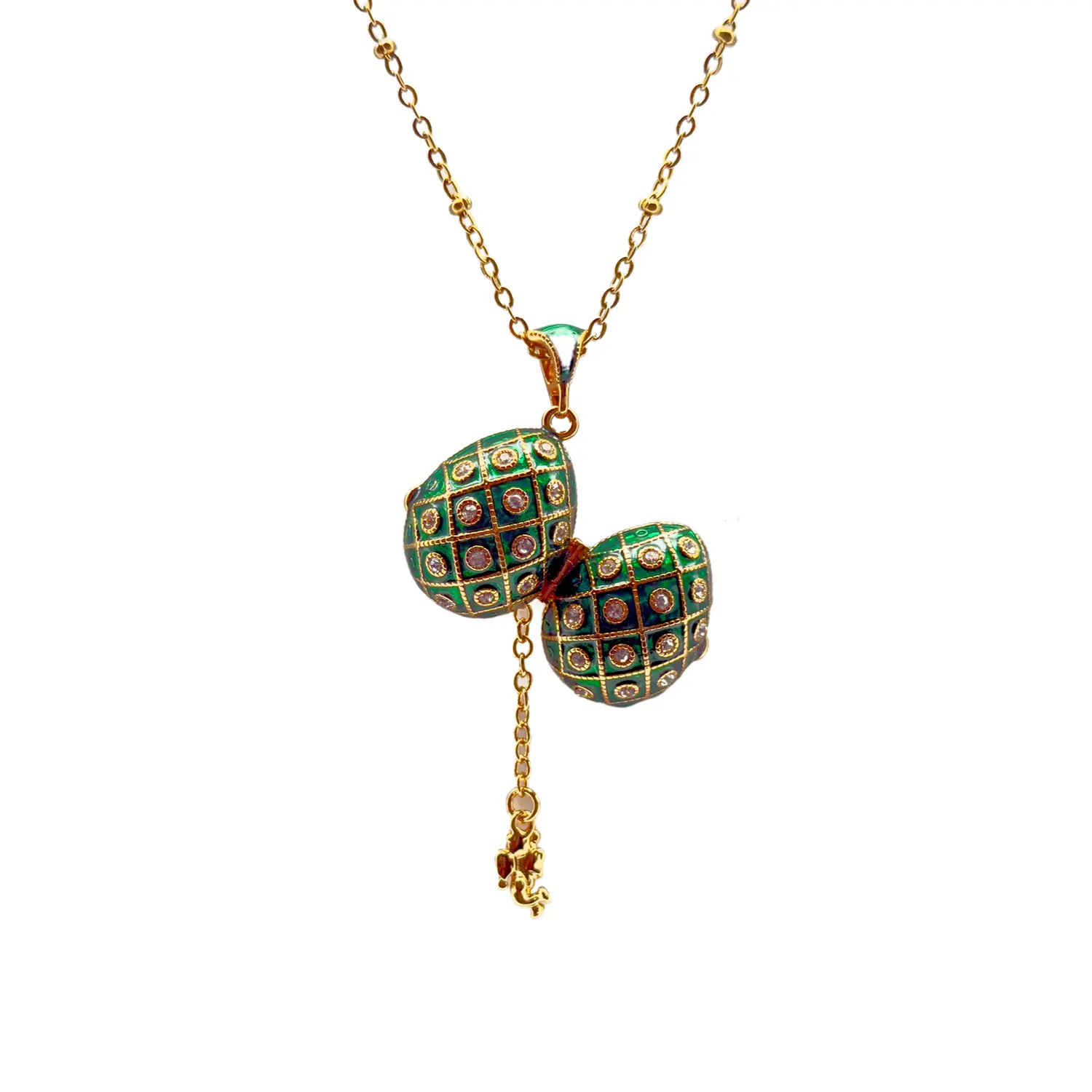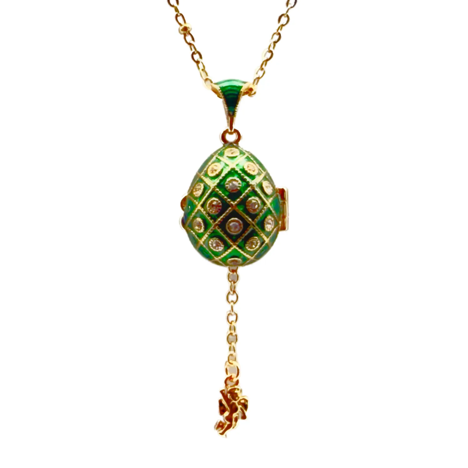 Collier Œuf Impérial Vert et Or – Médaillon ouvrant avec ange