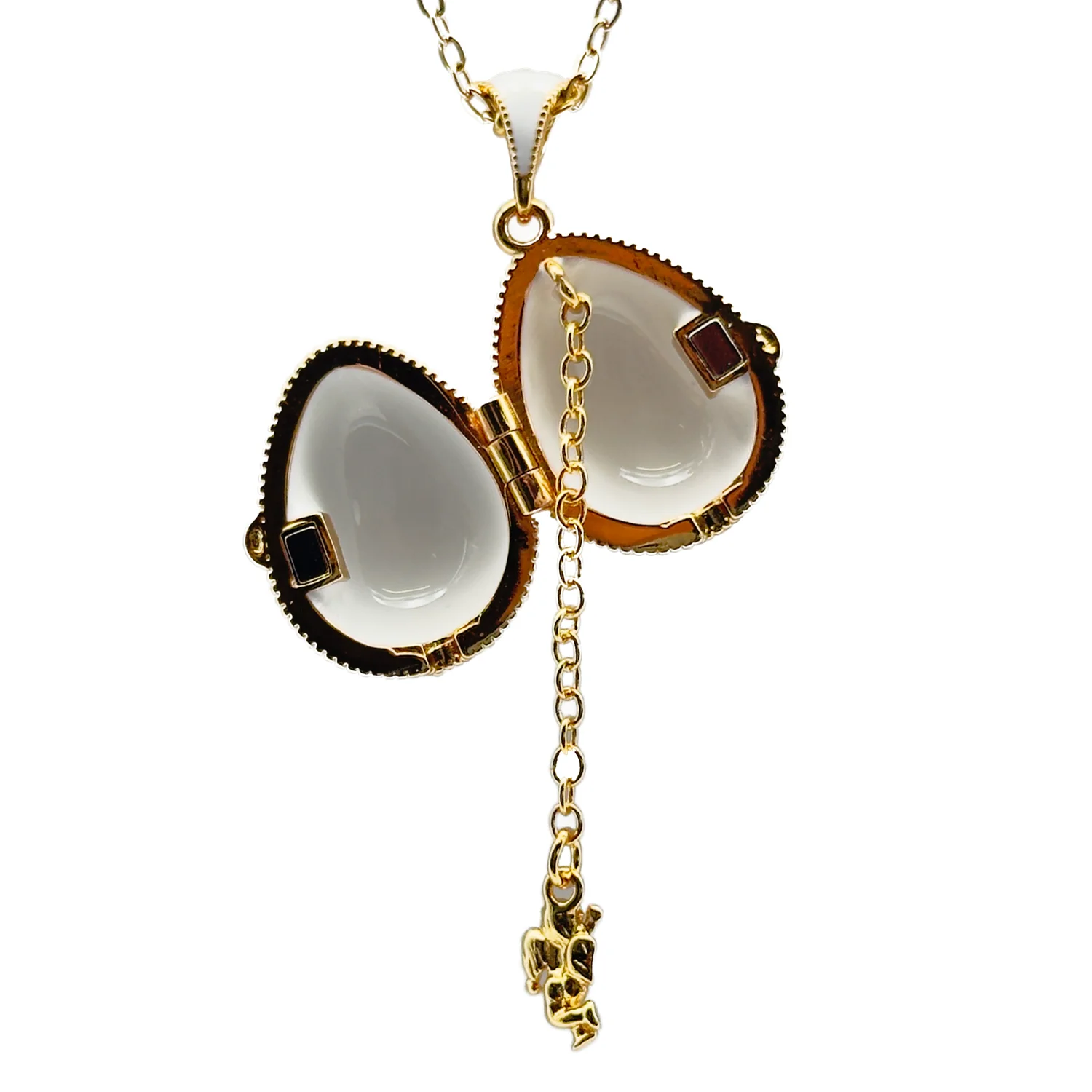 L’ingéniosité de ce bijou réside dans sa surprise : l’œuf s’ouvre délicatement, révélant unAnge gardiens. Les détails soignés, comme la petite étoile sous la croix et la breloque perlée, font de ce collier un objet de dévotion unique. C’est le cadeau parfait pour célébrer Pâques ou toute autre occasion religieuse, offrant à la fois beauté et signification. Portez-le comme un rappel de la protection divine et de la joie de la Résurrection.