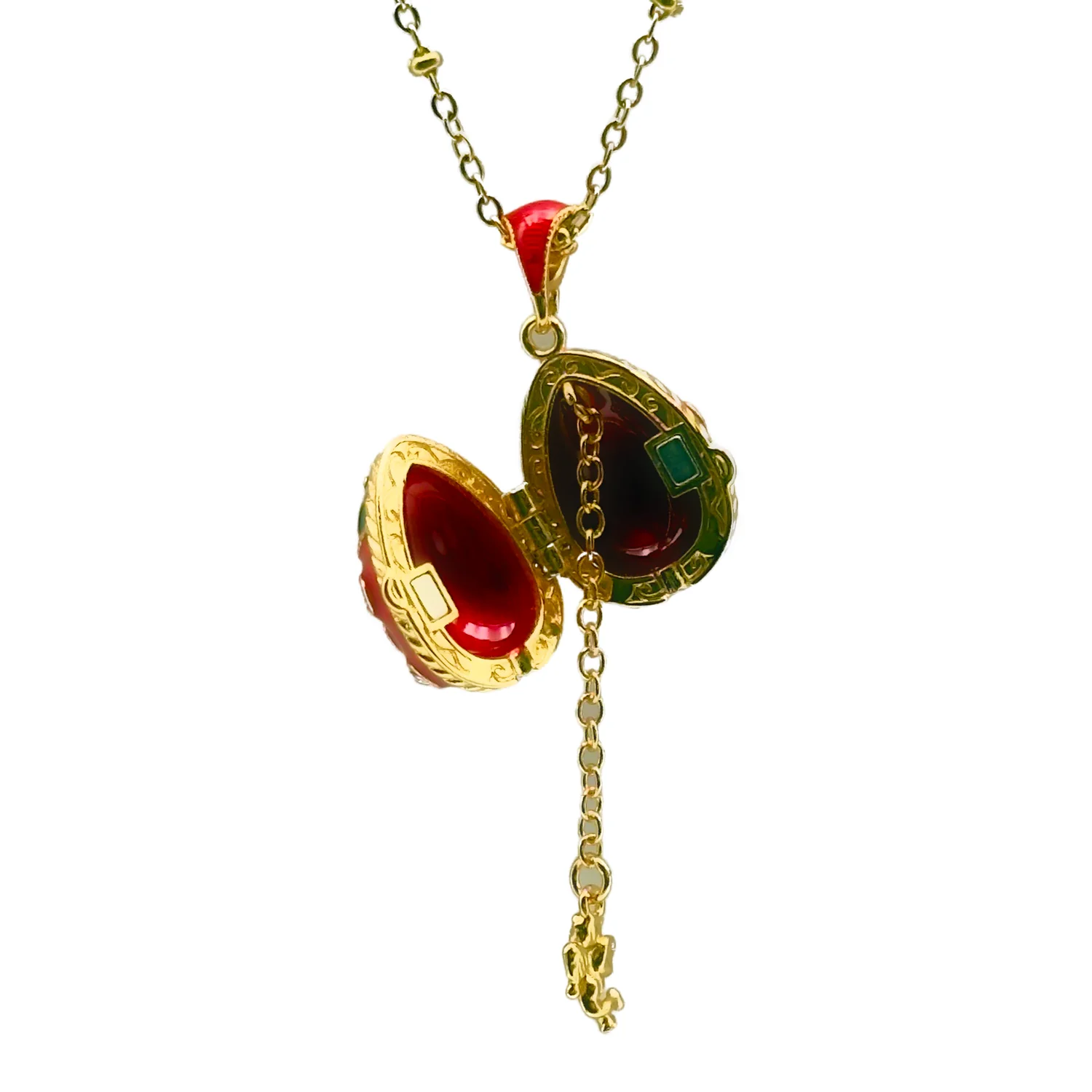 Inspiré des grandes traditions de joaillerie impériale (dans l’esprit des œufs célèbres de l’histoire européenne), ce collier allie élégance, mystère et foi.