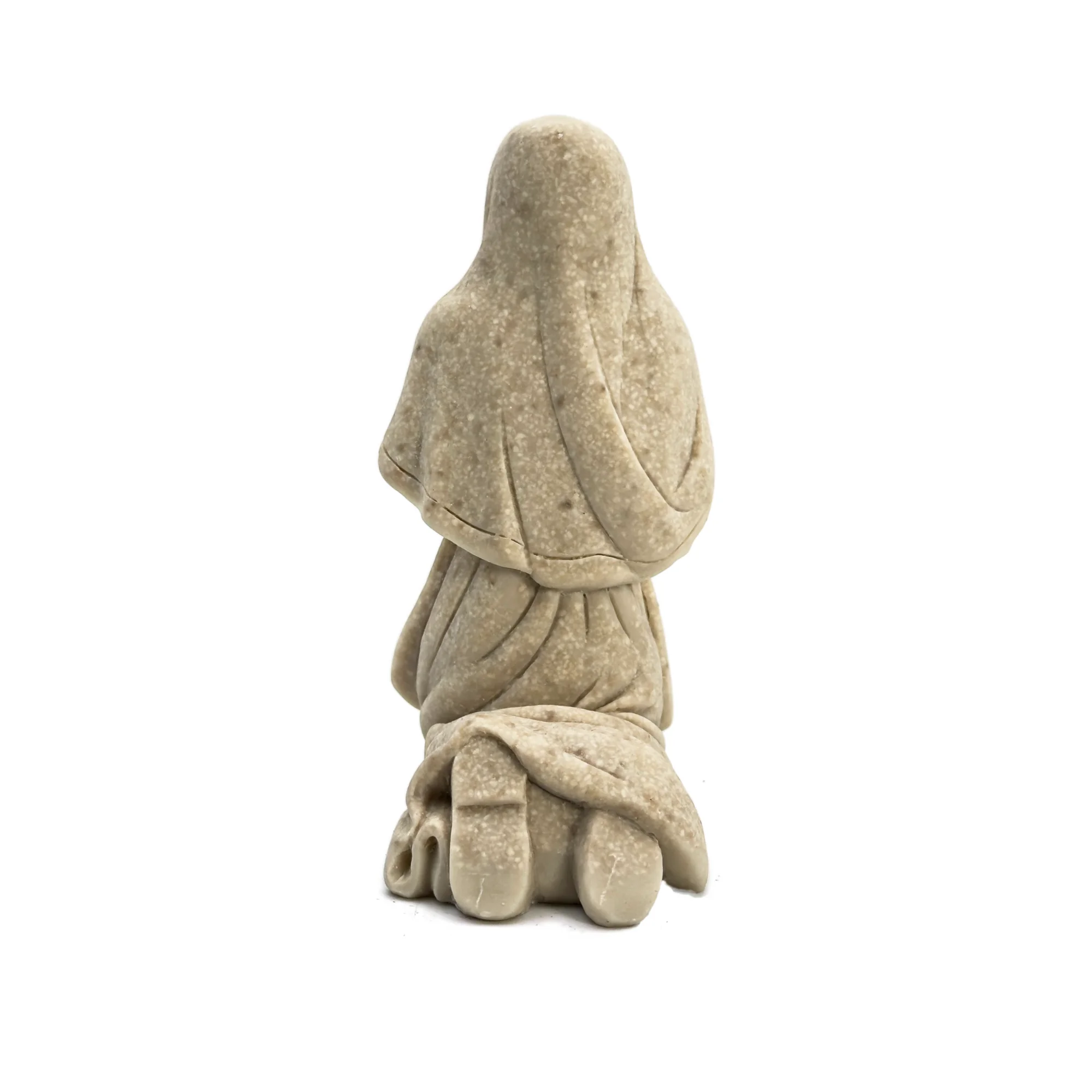 La poudre de marbre offre à cette statue un rendu délicat, dense et harmonieux, avec un aspect plus noble qu’une résine classique. Sa teinte pierre renforce encore cette impression de sérénité. Elle rappelle la roche, la grotte, la stabilité et la simplicité, dans un esprit très cohérent avec l’univers de Bernadette.