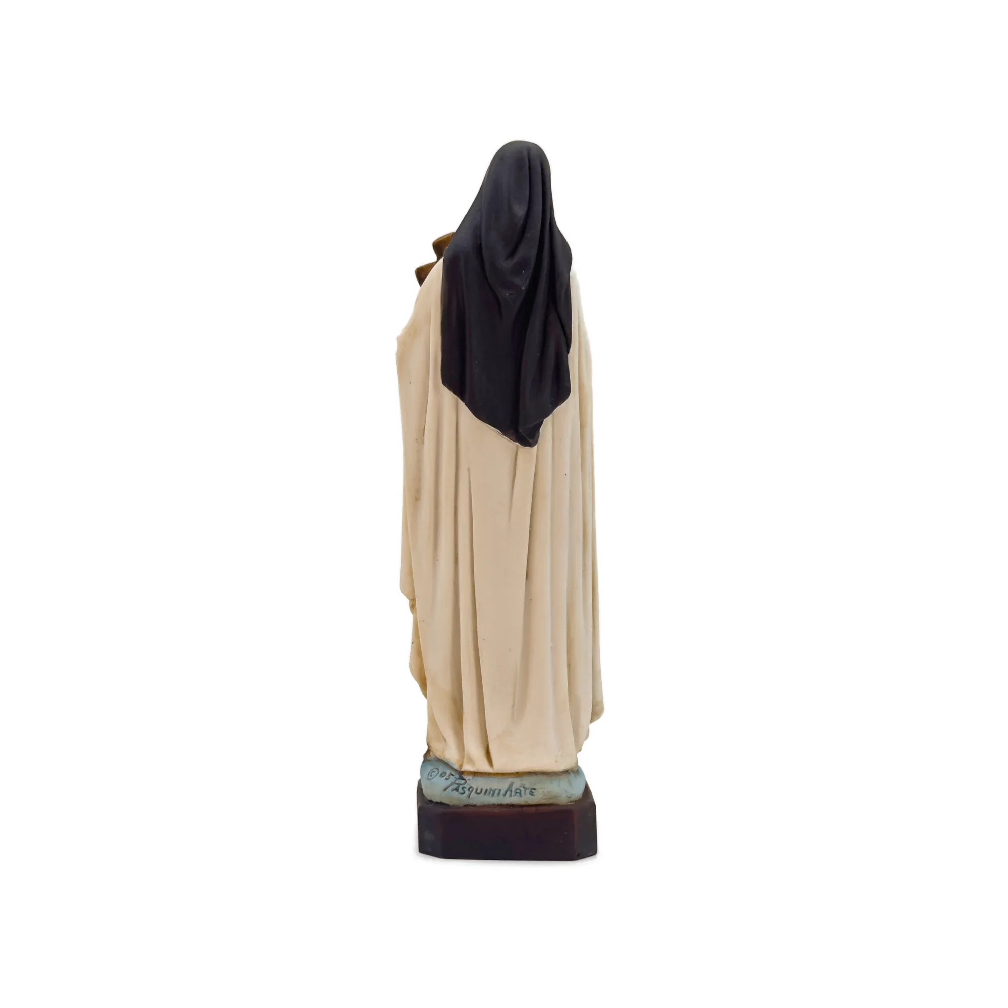 Docteur de l’Église, Sainte Thérèse a enseigné la “petite voie” : faire les choses ordinaires avec un amour extraordinaire. Cette représentation rappelle son message de confiance totale en Dieu.