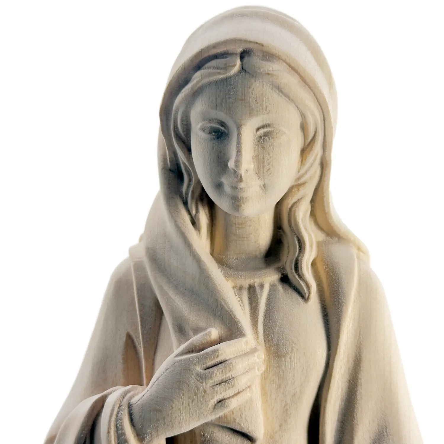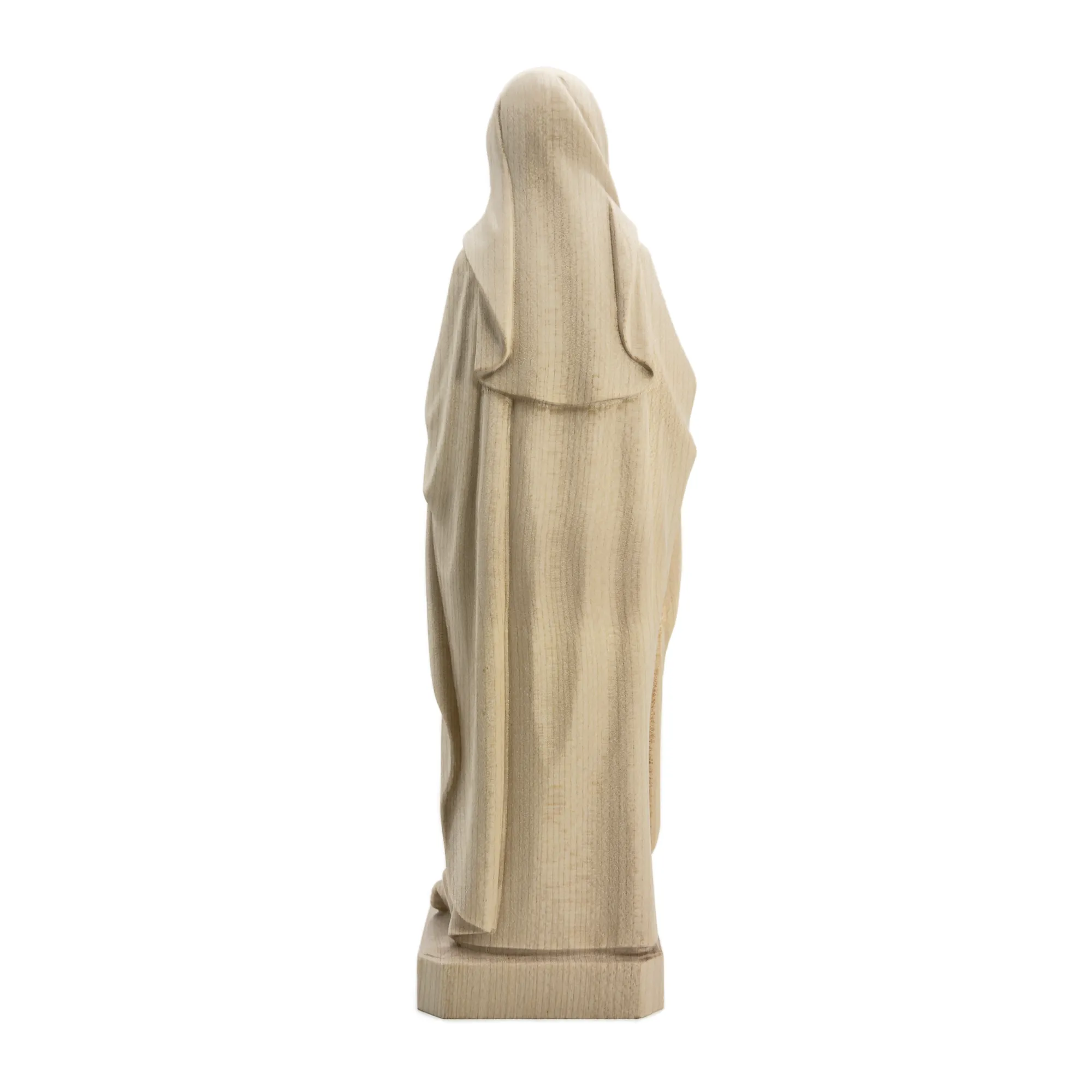 Cette statue en bois naturel sculpté, issue du savoir-faire traditionnel du Val Gardena (Italie), met en lumière un moment unique de l’histoire du salut : celui de l’Annonciation et de la maternité divine.