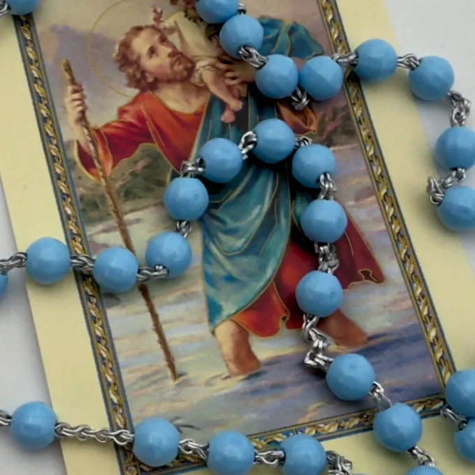 Chapelet aux perles phosphorescentes vert pâle : il capte la lumière le jour et l’émet dans l’obscurité pour veiller à la prière du soir.