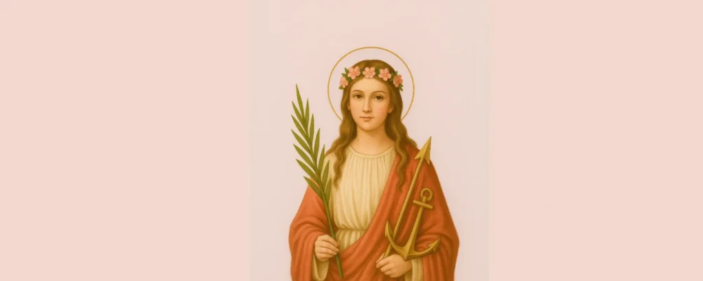 Symboles sur les tuiles : palme, lys, ancre, flèches (lecture traditionnelle : virginité et martyre). - 1835 (août) : guérison de Pauline Jaricot à Mugnano, décisive pour la diffusion du culte.
